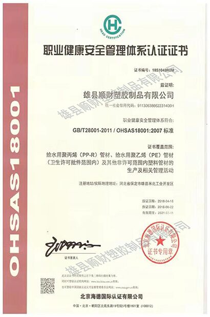 • 职业健康安全管理体系认证证书